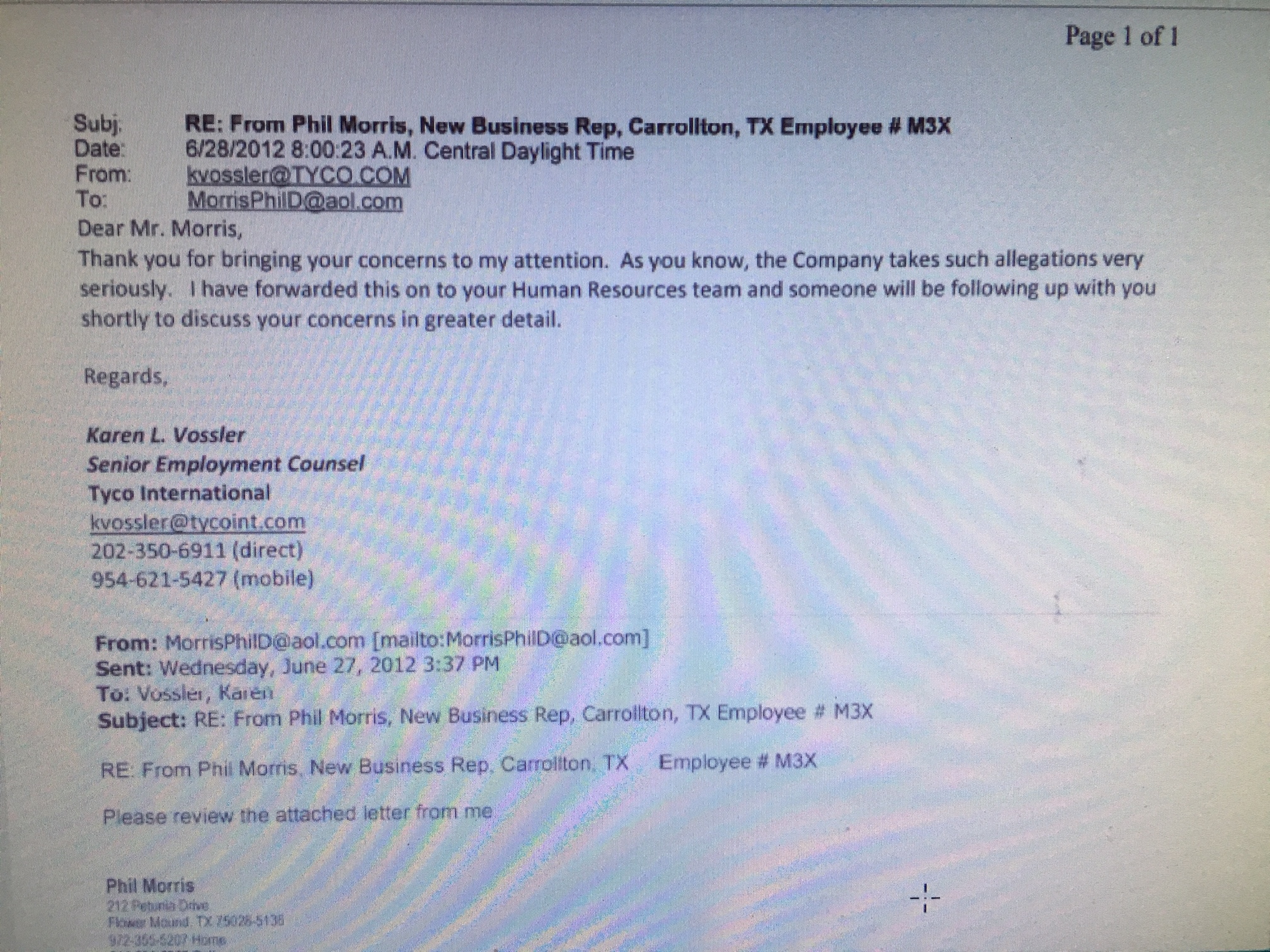 illegal conduct or actions by ADT, Protection One, TYCO, Johnson Controls, or Apollo Global.